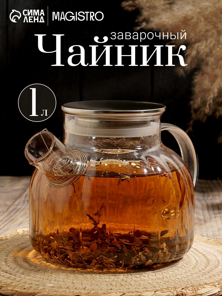 Чайник заварочный Magistro Свик, 1 л, с металлическим фильтром, стекло, прозрачный