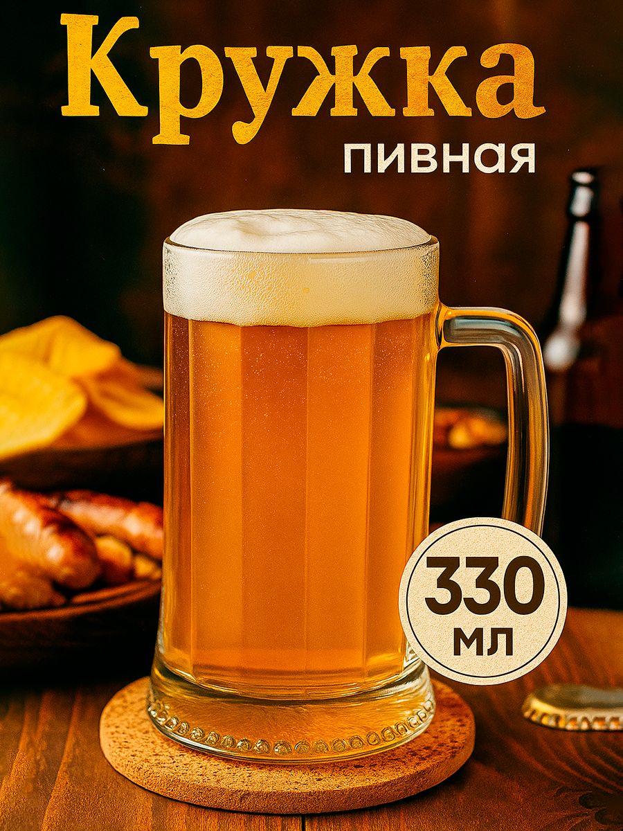 Пивная кружка Ладья, объем 330 мл, стекло, прозрачная