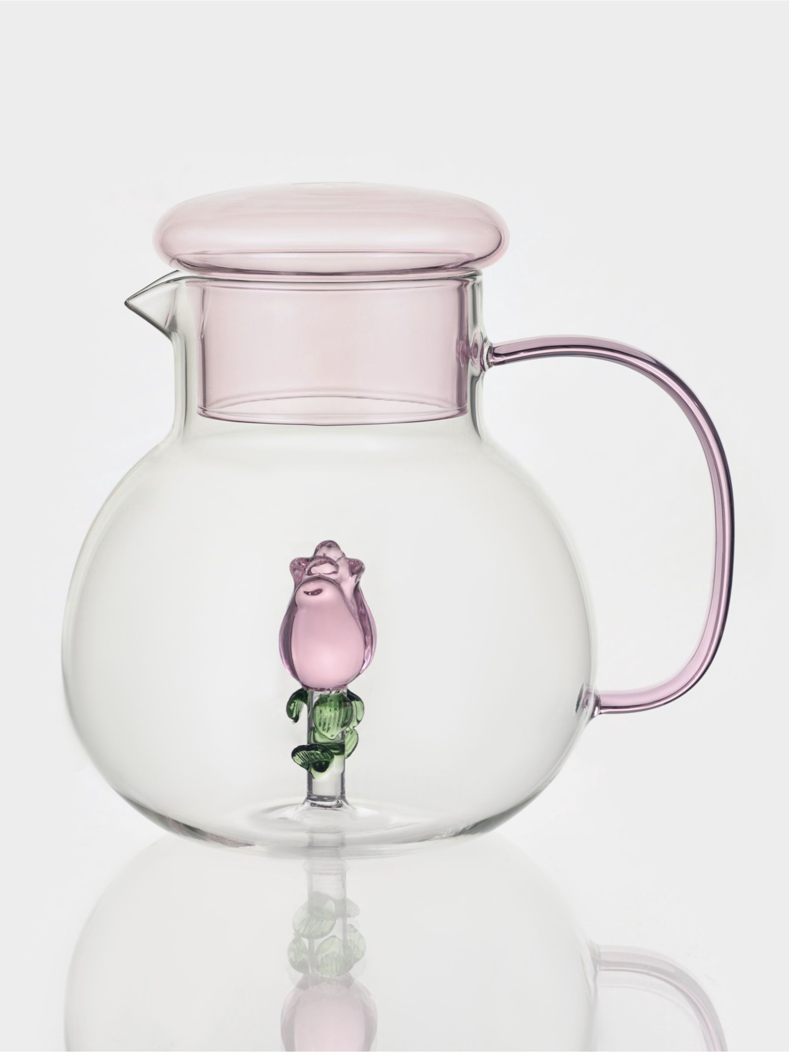 Кувшин Розочка ,1 л, стекло, прозрачный, розовый