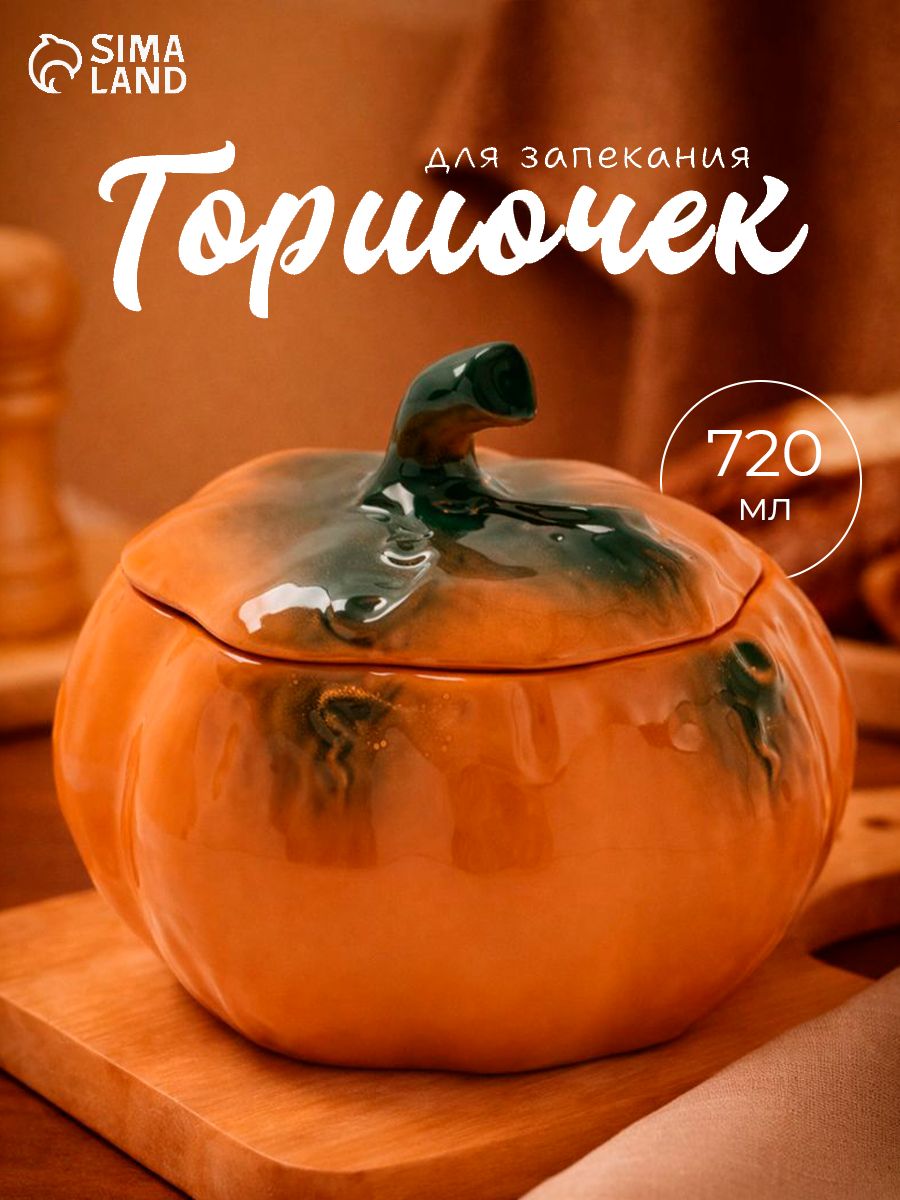 Горшочек для запекания в духовке Тыква , 720 мл, оранжевый, керамика