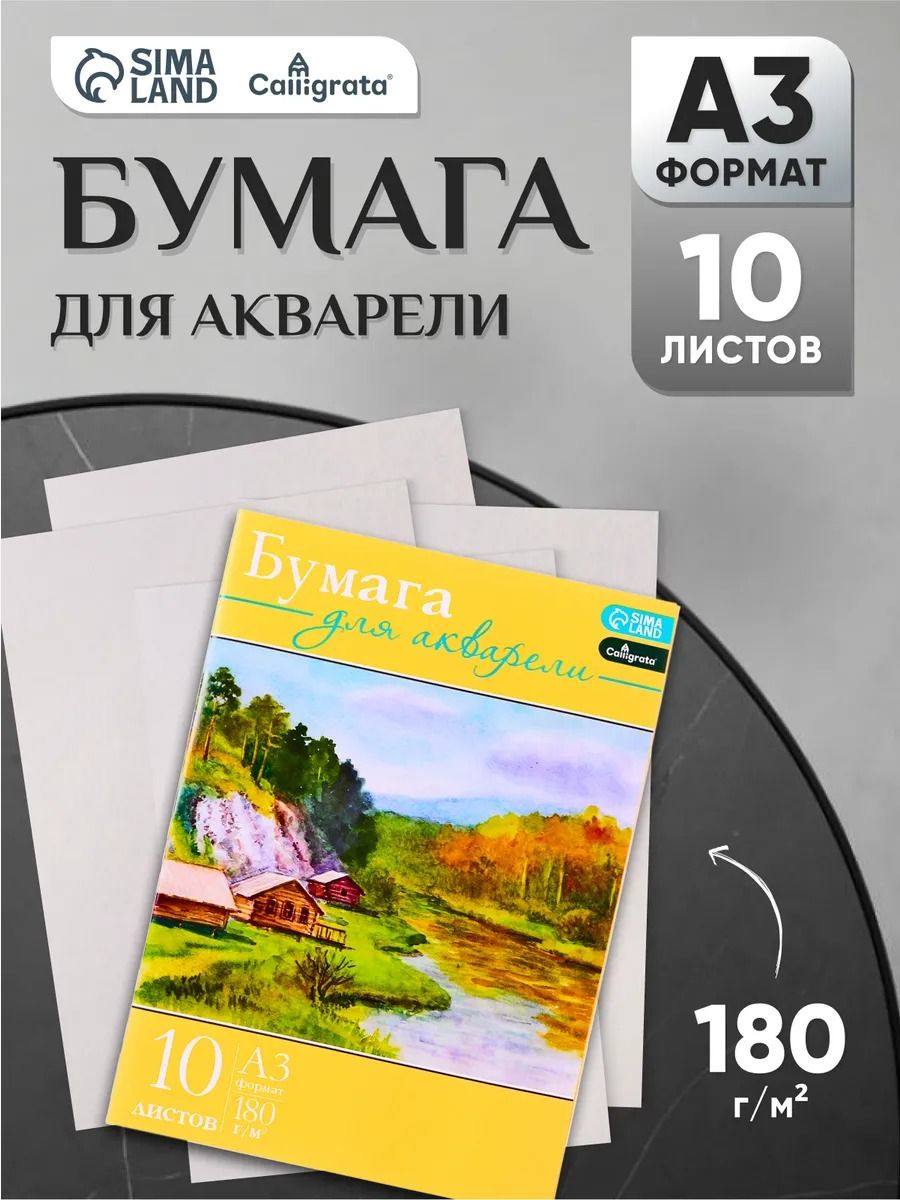 Папка для рисования акварелью А3 "Пейзаж", 10 листов, 180 г/м2