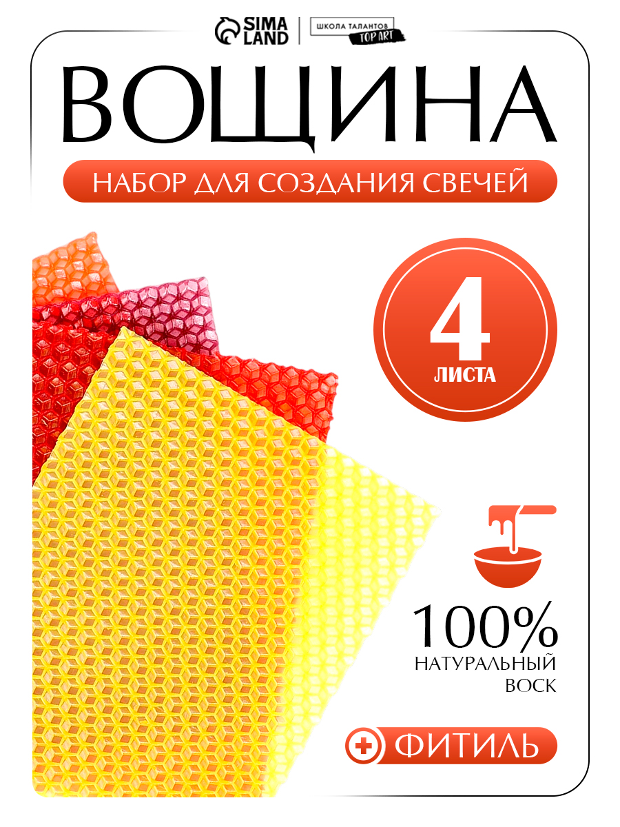 Вощина для свечей, 4 цвета + фитиль / набор для изготовления свечей