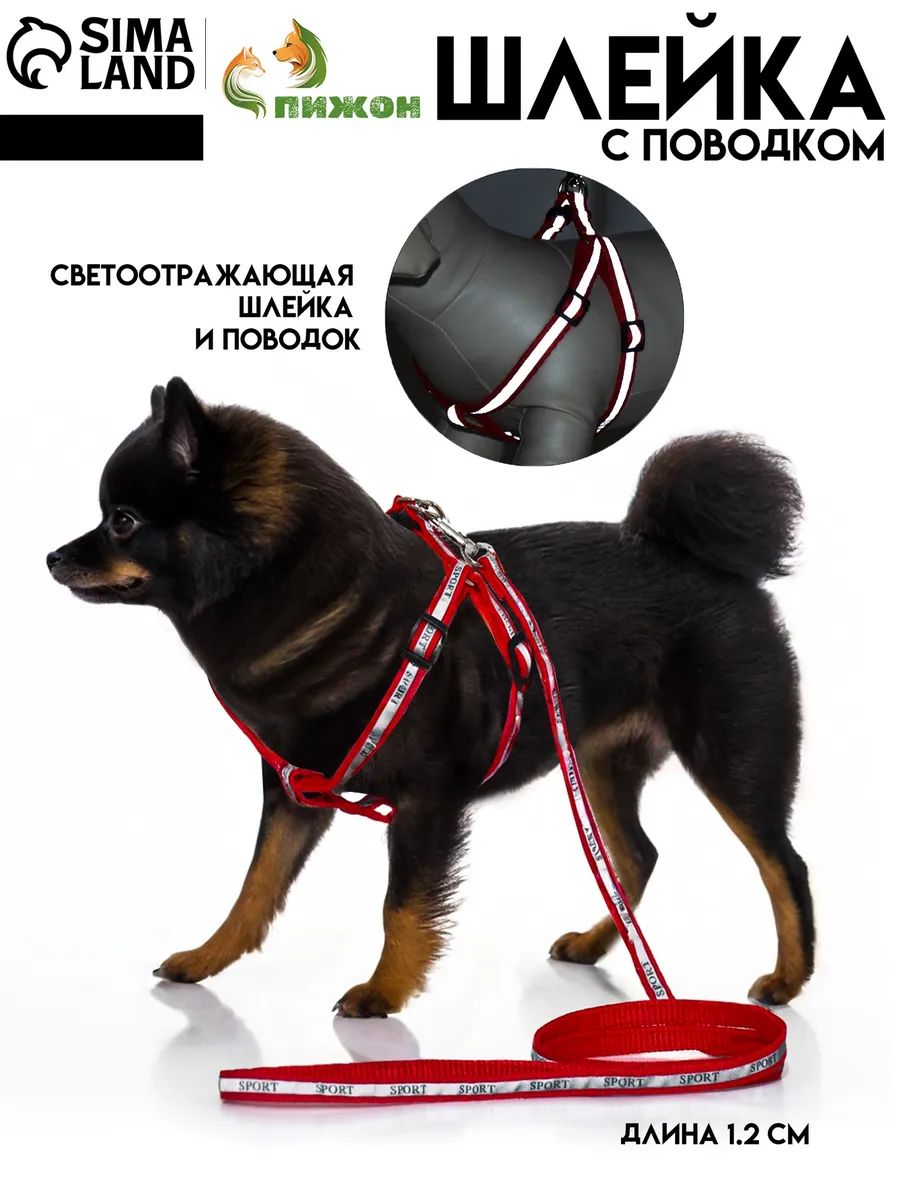 Шлейка с поводком, светоотражающий, ОГ 23-35 с, ширина 1 см, поводок 120 см, красная