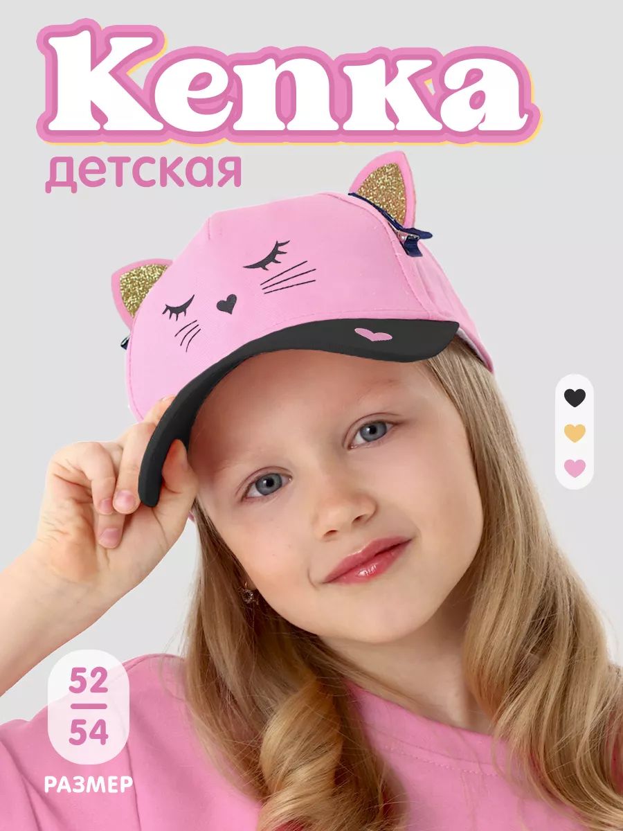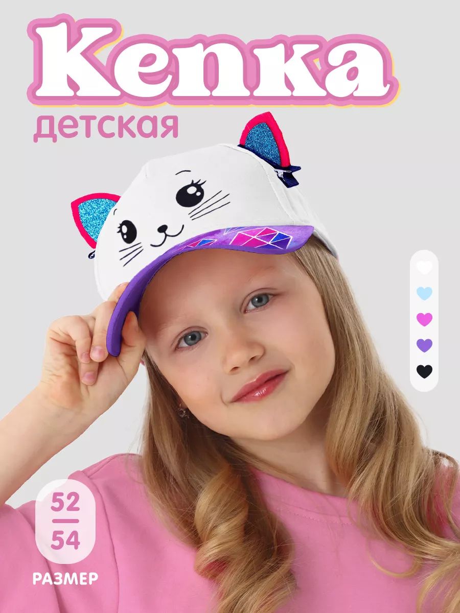 Кепка детская для девочки Кошечка , с заколочками, р-р. 52-54 см, 5-7 лет