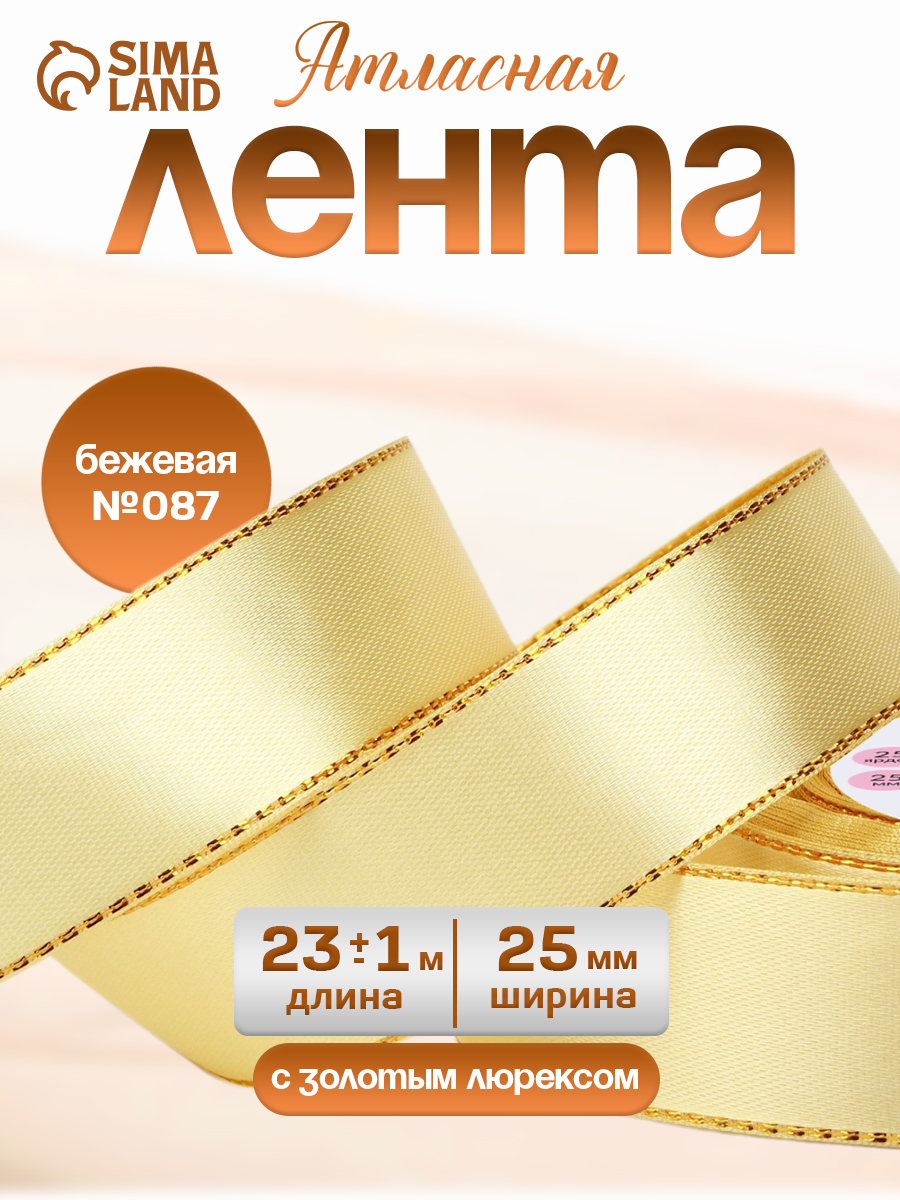 Лента атласная 25 мм х 23 м, с золотыми нитями, упаковочная для рукоделия, для декора и творчества, шитья, упаковки и оформления подарков