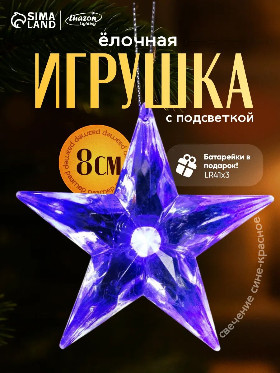 Елочная игрушка Звезда, от батареек, свечение мульти (RGB)