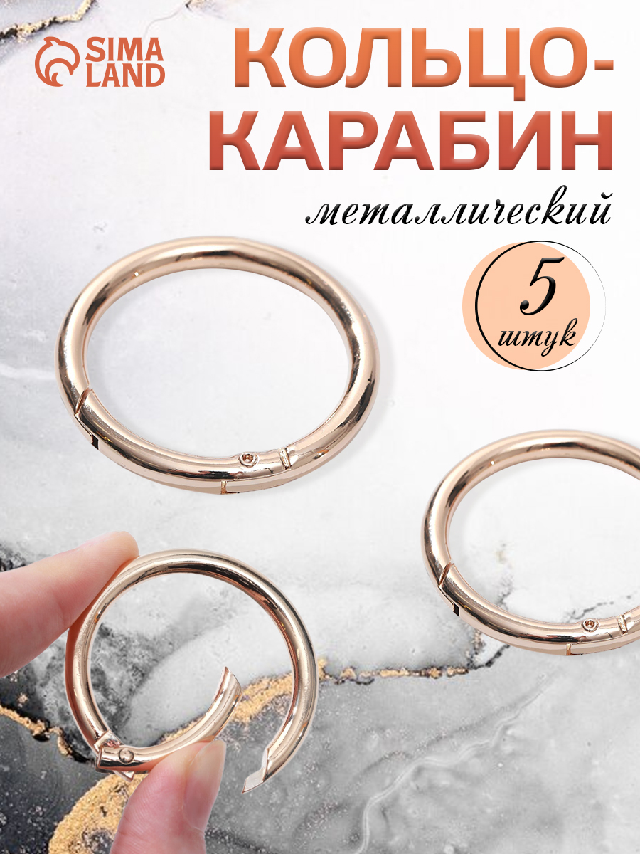 Кольцо-карабин, диаметр 38/48 мм, толщина - 5 мм, 5 шт, цвет золотой