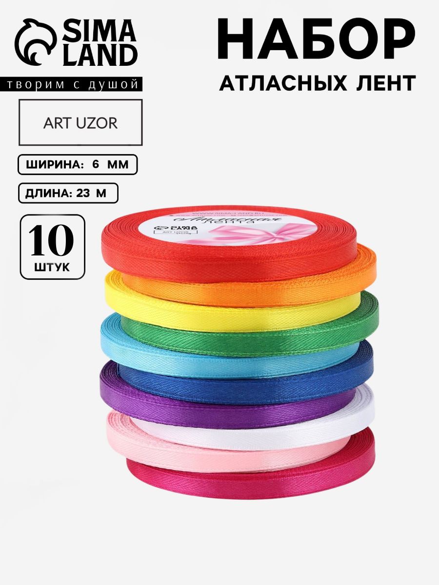 Лента атласная, набор 10 шт, 6 мм, 23 м, разноцветная