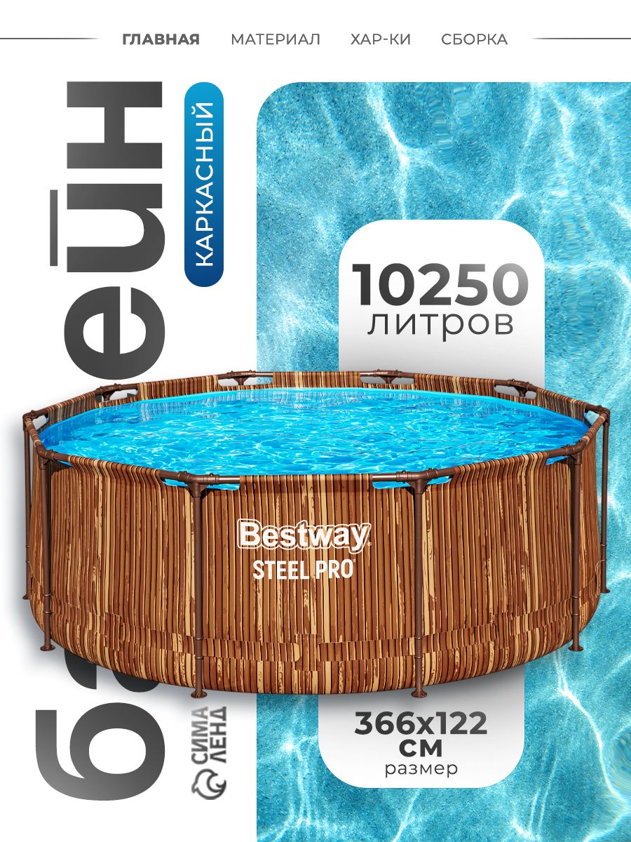 Бассейн Bestway каркасный 366х122 см, 10 250л, Steel Pro MAX