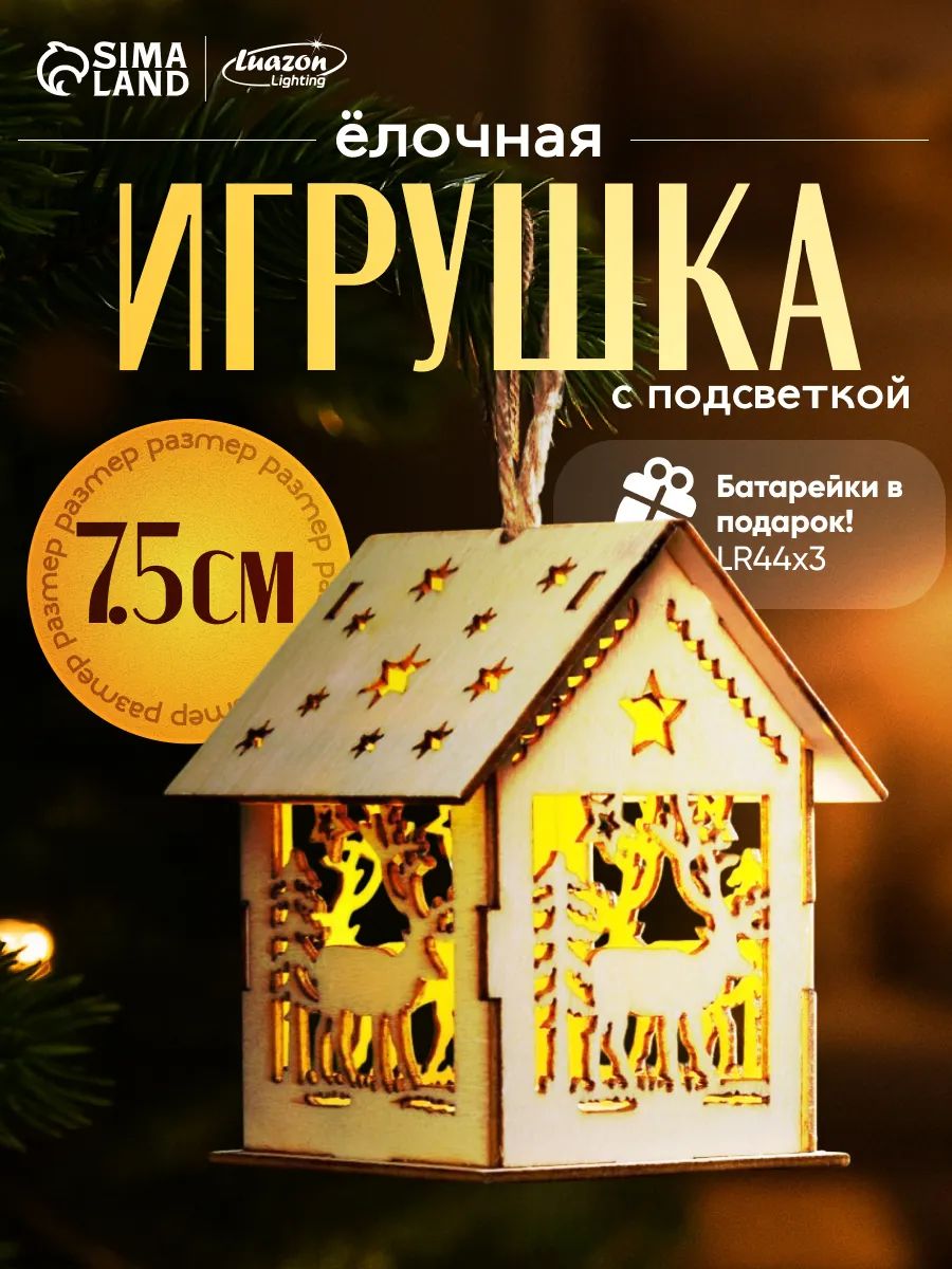 Новогодняя елочная игрушка светодиодная Домик, 8 см, от батареек, свечение тёплое белое