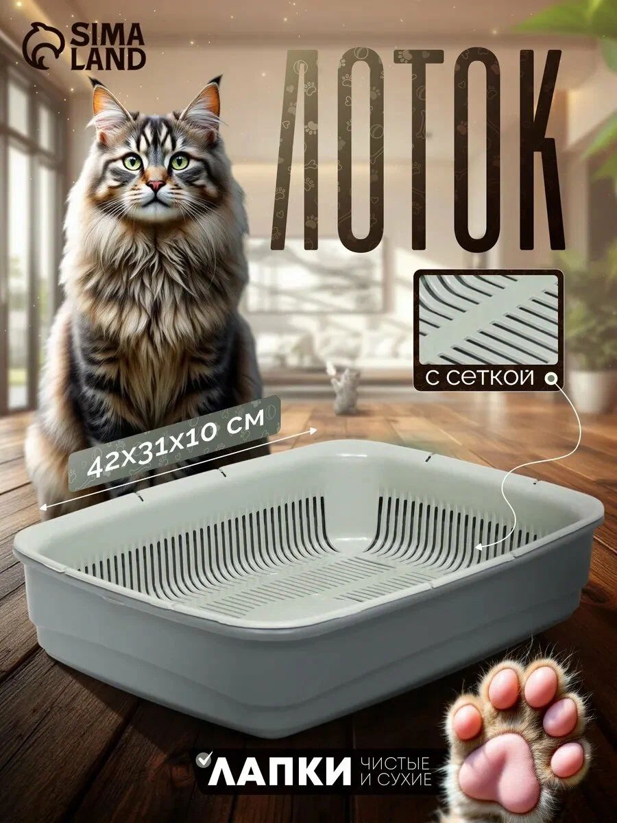 Лоток для кошек с сеткой, 34,5x25,5x7,5 см, открытый, оливковый