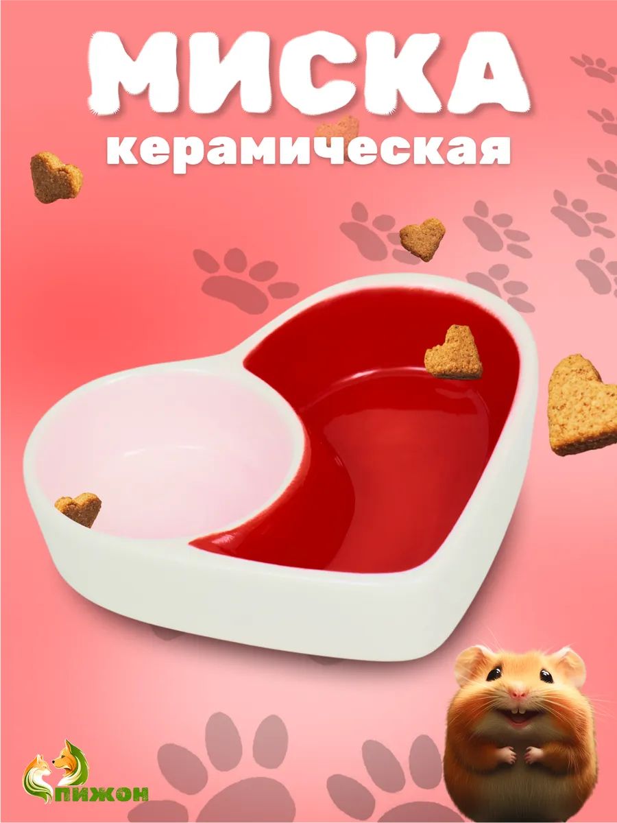 Миска для грызунов керамическая, хомяков и кроликов, двойная, 10x8.5x2.3 см