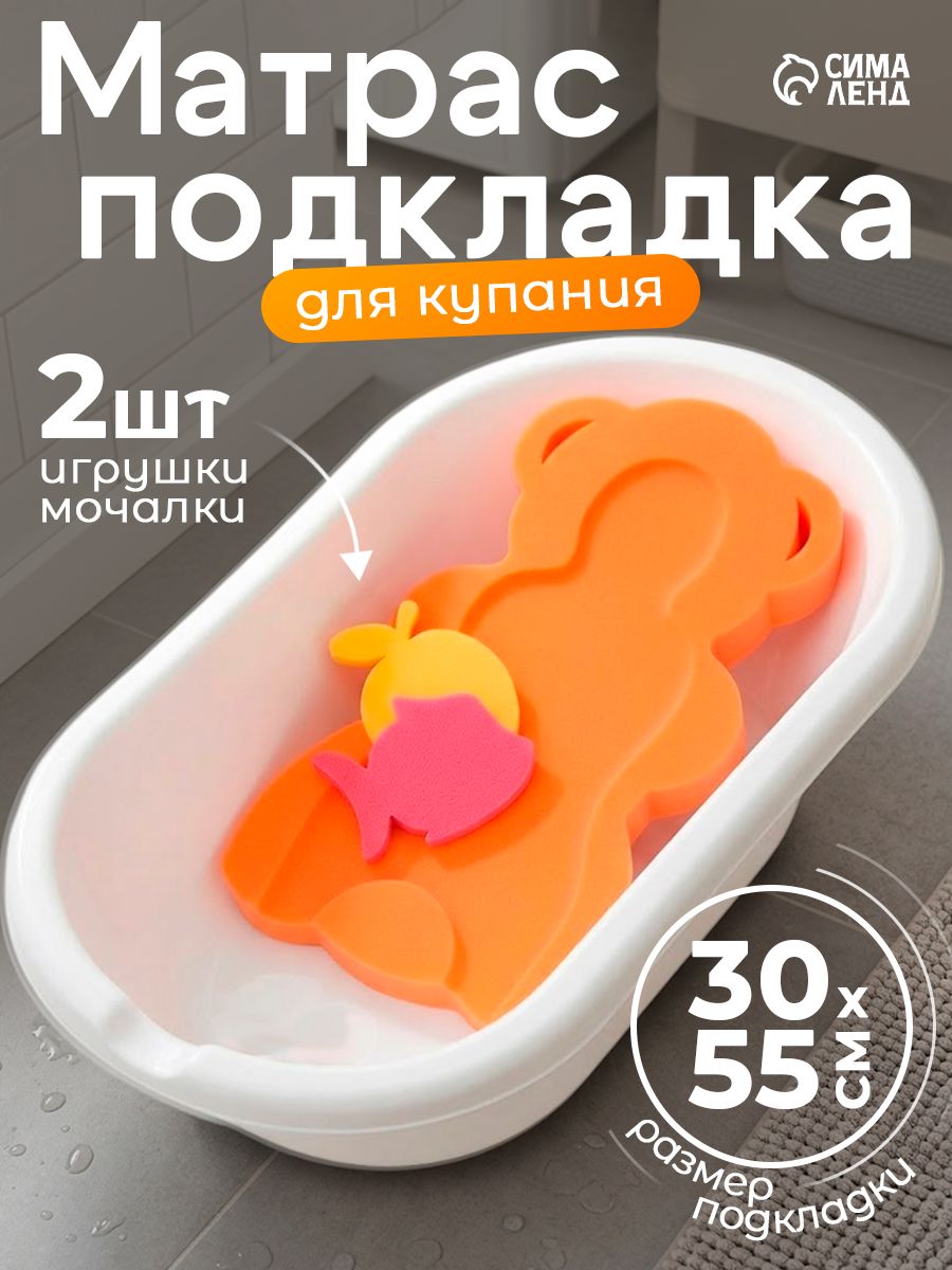 Матрасик для купания новорожденных / "Мишка", цвет оранжевый