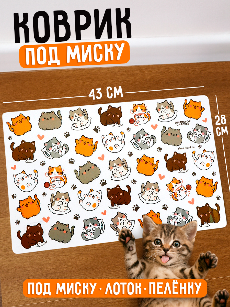 Коврик под миску для кошек и собак "Много котиков!", 43х28см
