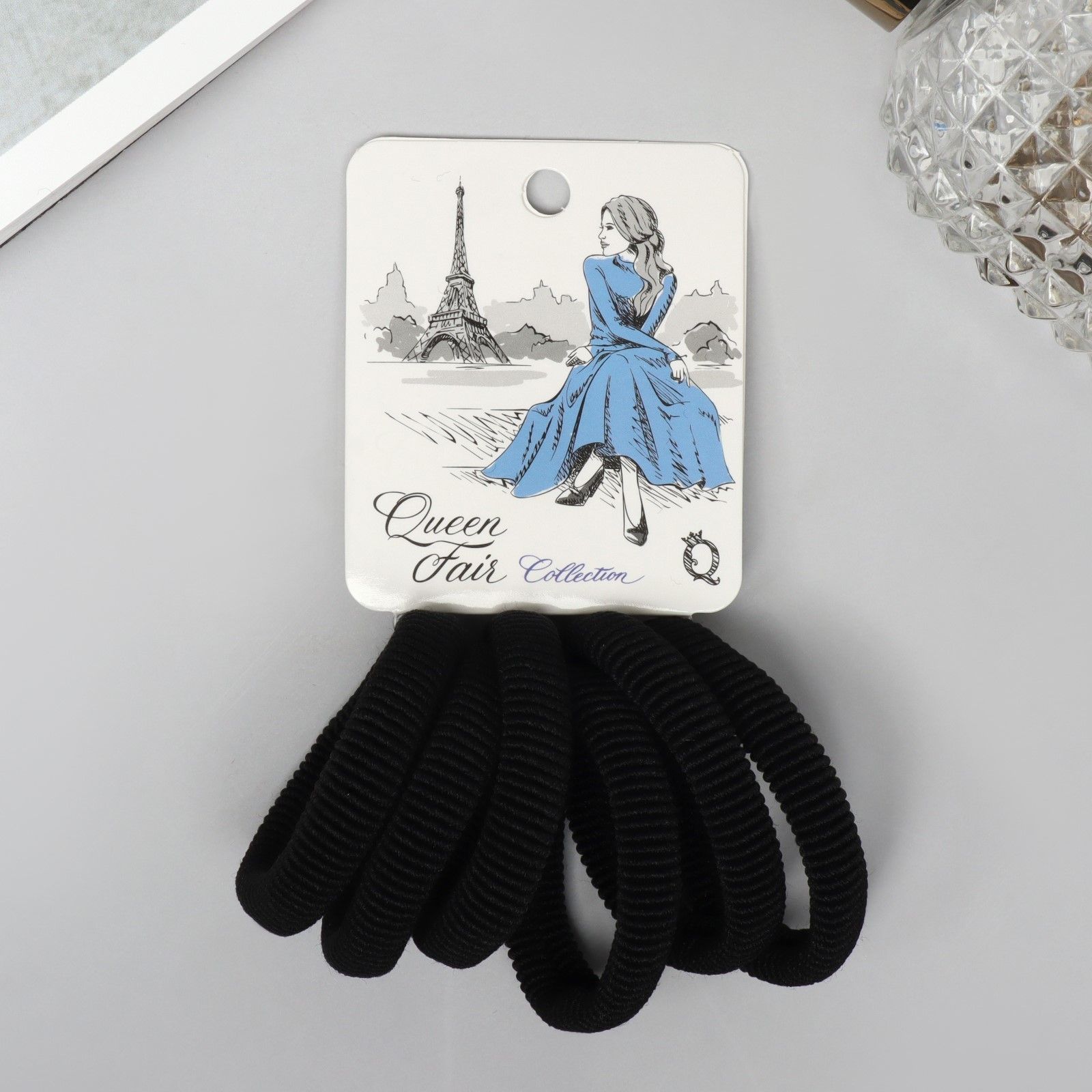 Резинки для волос QF Марлен, набор 6 шт., грёзы, 4 см, чёрные
