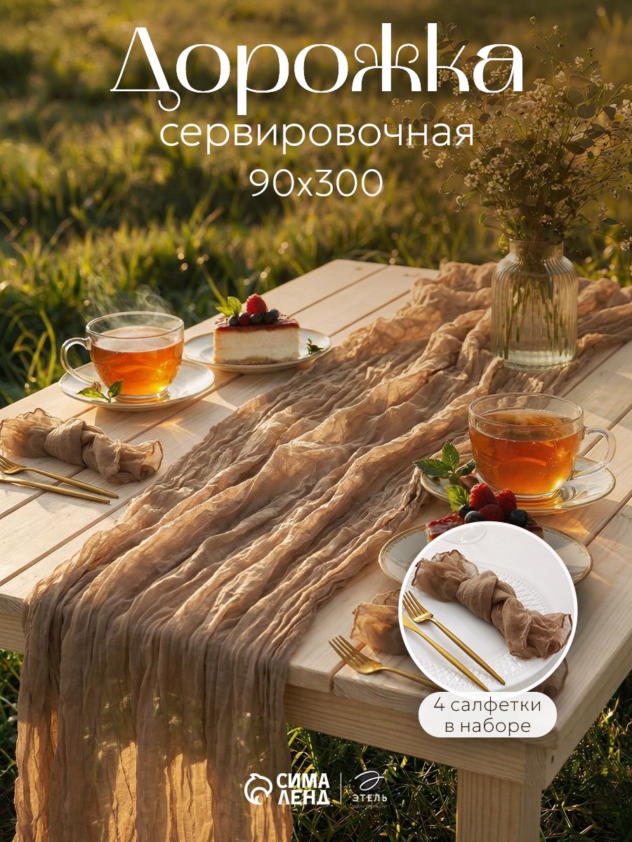 Дорожка на стол с салфетками, дорожка 90х300 см, салфетка 50х50 см - 4 шт, Бежевый