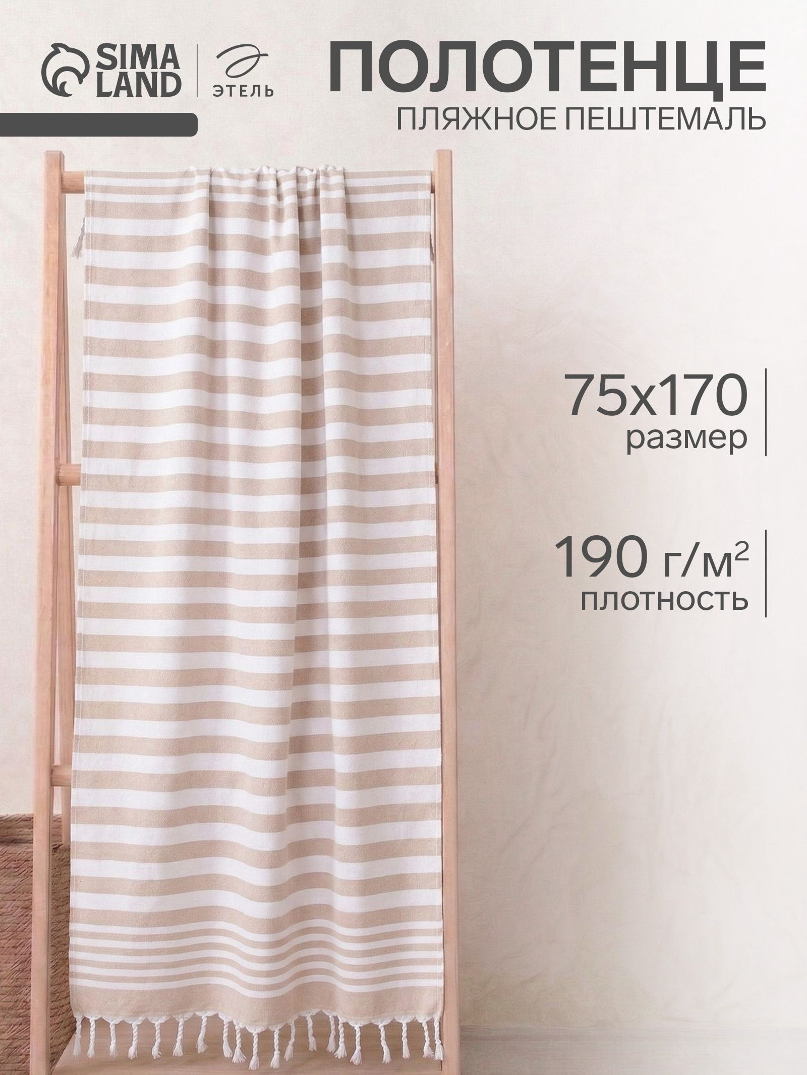 Полотенце пляжное 75х170 см, Пештемаль, Бежевое