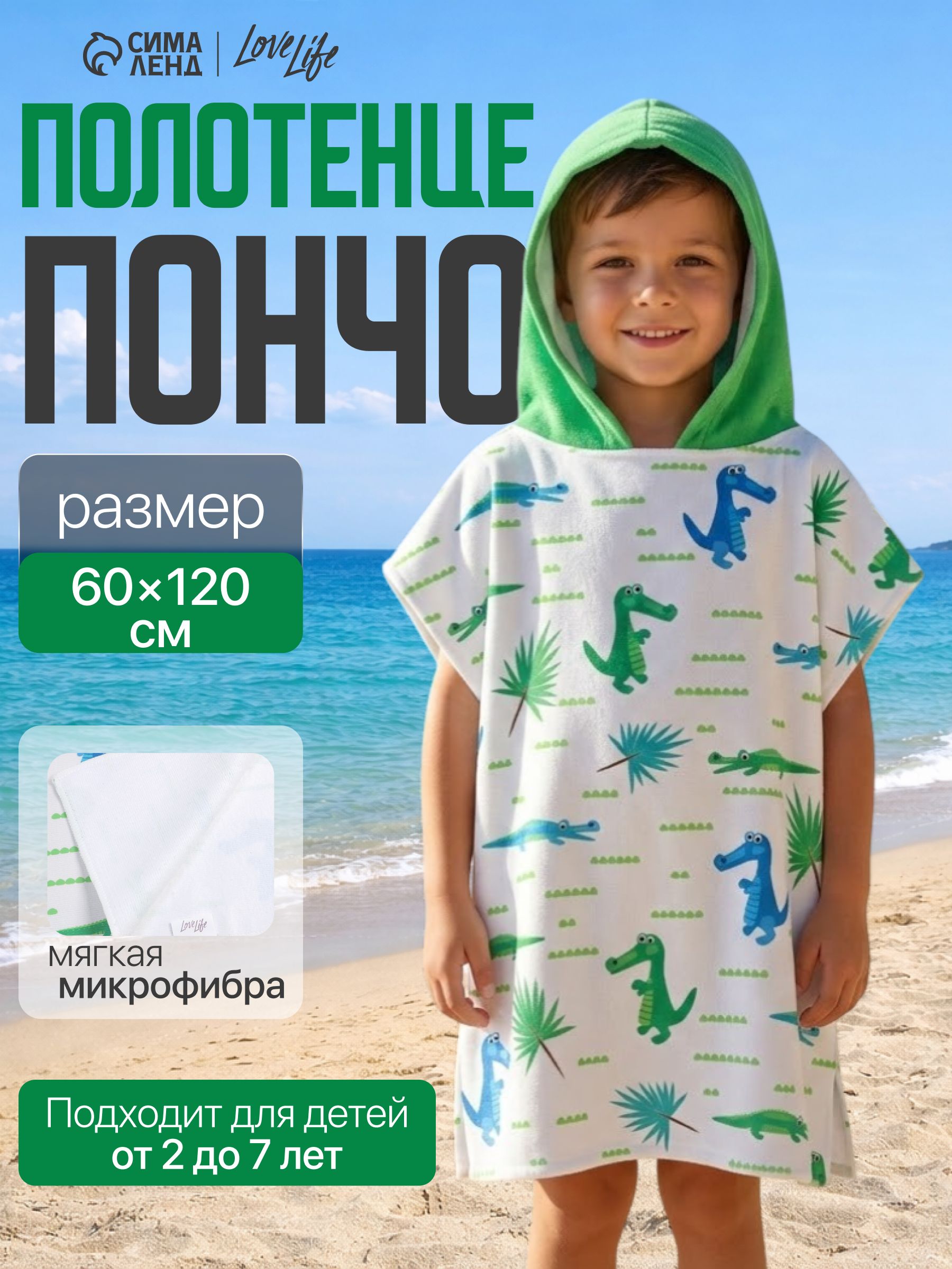 Полотенце пончо детское 60х120 см, Крокодильчик