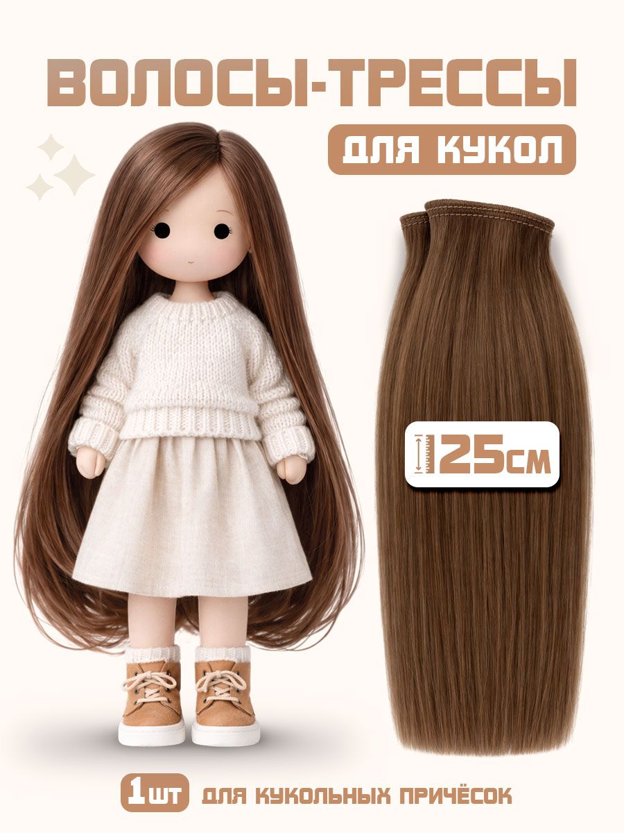 Волосы для кукол трессы, длина волос 25 см, ширина 100 см, цвет шатен, трессы для кукол