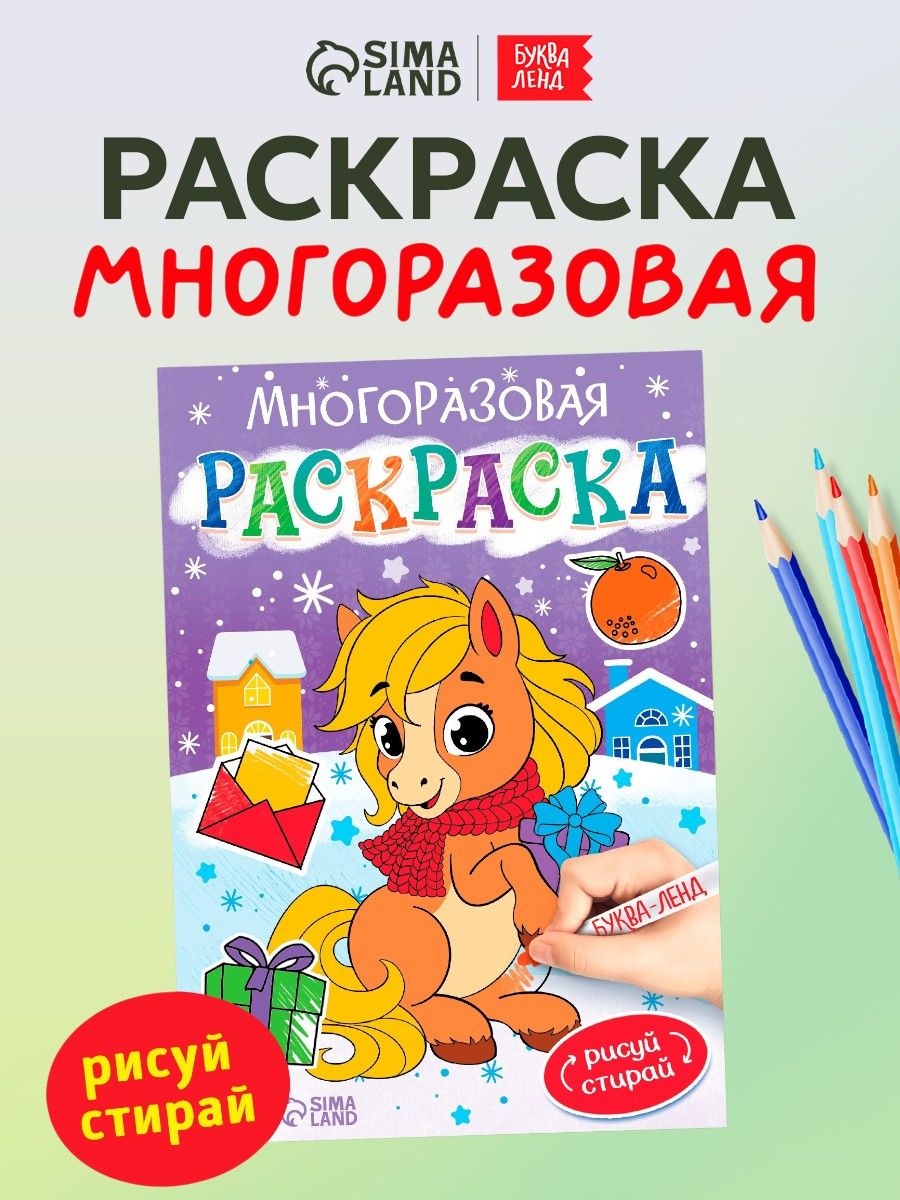 Многоразовая раскраска, Буква-Ленд, "Лошадка", новогодняя раскраска, подарок на новый год детям