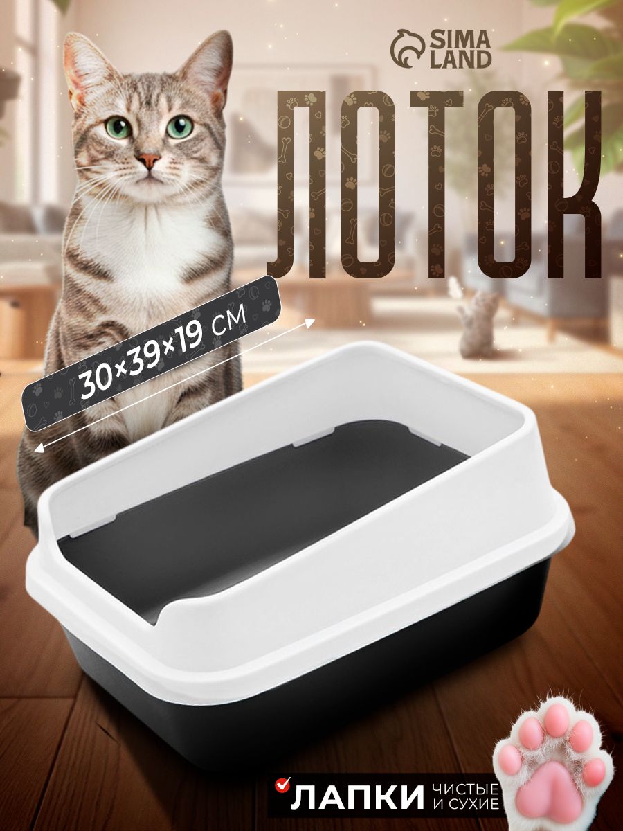 Лоток для кошек с бортами, 30x39x19 см, тёмно-серый