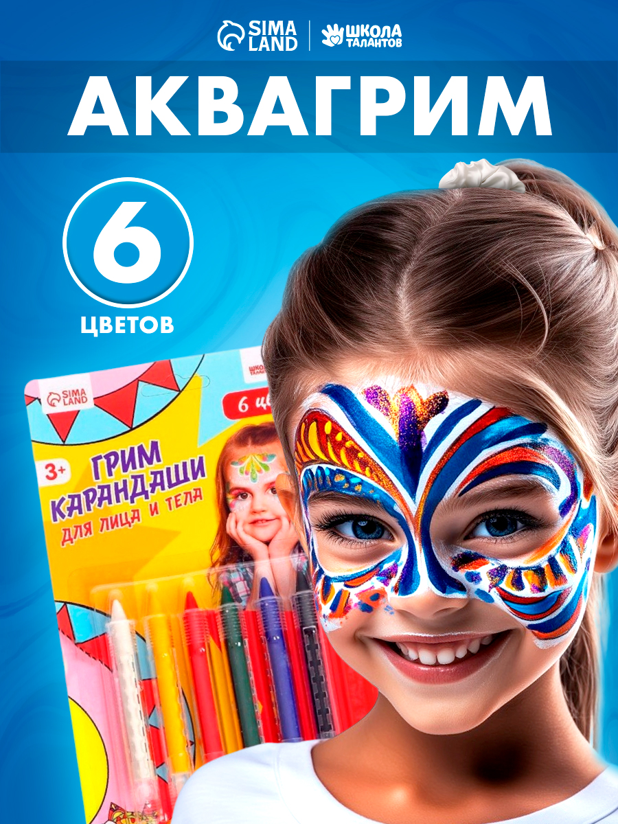 Грим для лица, "Карандашики", 6 цветов, на масляной основе